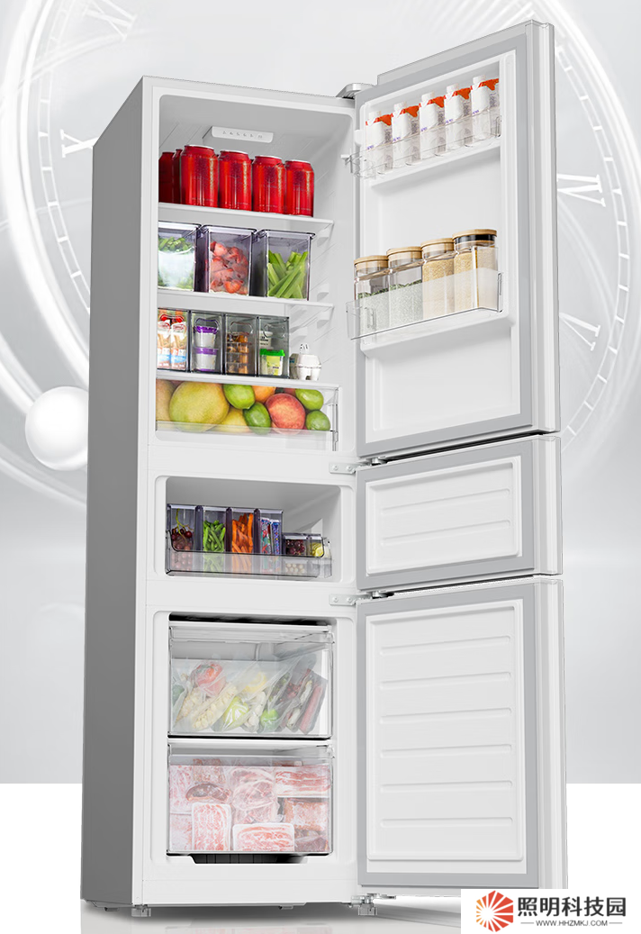 本站从商品页面获悉,这款新品约 0.28m³ 占地面积、505mm 最大宽度,容积率达 44.8%。新品有 215L 容量,其中冷藏保鲜 128L,中门微冻 30L,冷冻保存 57L。