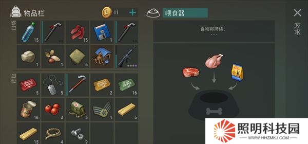 2、然后你可以通过背包内的喂食器给小狗进行喂食。