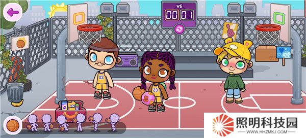 5、返回游戏主页面后,轻松切换到其他场景,让角色参与如打篮球等多样化的活动。