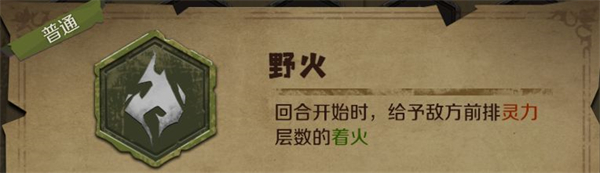 专属卡牌“焚荒”能提供一个稳定的全体着火buff,配合初始天赋“巫医手段”可以在前期拥有较强的恢复能力。