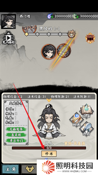 4、你可以点击下方的修炼按钮,来提升自己角色的修为。