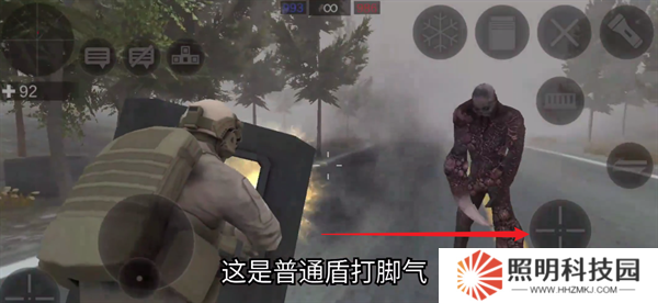 1、当僵尸接近的时候,可以点击右下角的攻击按键来将僵尸击退。