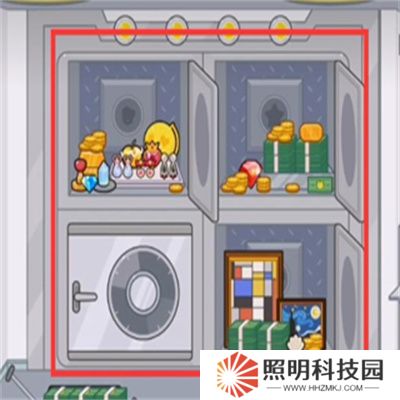 来到信用社二楼,打开保险柜,根据图形找到钻石,红心,星星以及贝壳并依次放入,保险柜就会打开,里边有很多宝物。