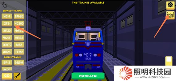 5、右下角相机可以切换不同视角查看火车的各个部位,到站可以点击相机上方的黄色按钮打开车门。