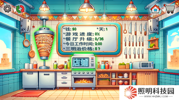 升级你餐厅的各个方面,从最新鲜的食材和最美味的沙威玛食谱到装饰和先进的厨房设备。与竞争餐厅一较高下争取成为城里最好的沙威玛大厨!