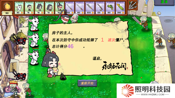 2、在这个版本的游戏中将植物全部替换为了永劫游戏中的英雄角色,具备了独特的技能玩法。