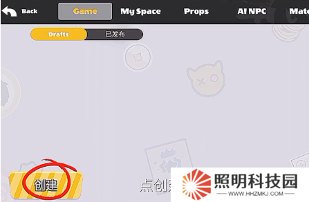 2、然后在游戏工作室的界面的左下角点击创建。