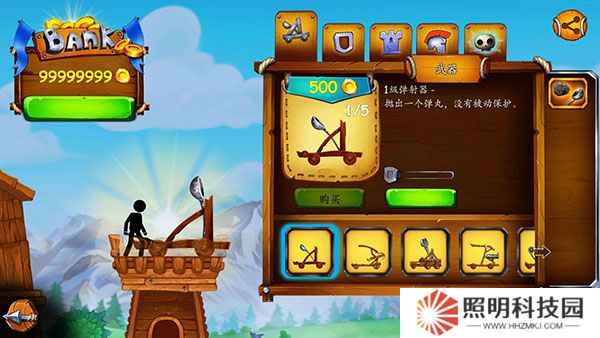 4、通过滑动屏幕来控制弹弓和选择的张力,精确计算投掷石块的角度进行发射。